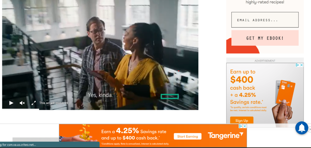 Their main way of making money would be ad revenue. The home page of the website is relatively ad free but once you start venturing into the recipes, the page is filled with video, banner, and other digital advertisements.