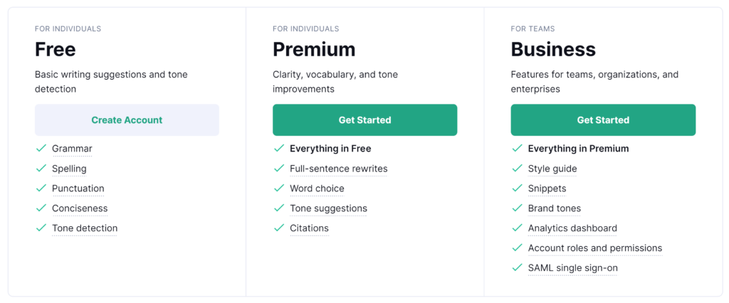 Grammarly has a subscription service where you can purchase a membership thats either free, premium, or for business. There are different ways to pay for some of these including monthly, bi-annually, and annually with annually being the overall cheapest option.