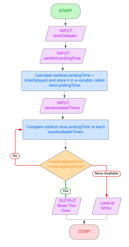 - If there are no newLandingTimeās available – Mary must land at Smits