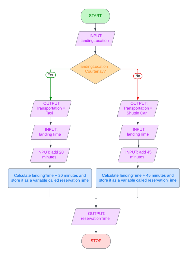 - If they are landing at Courtenay, they must add 20 minutes to the newLandingTime to determine the reservationTime