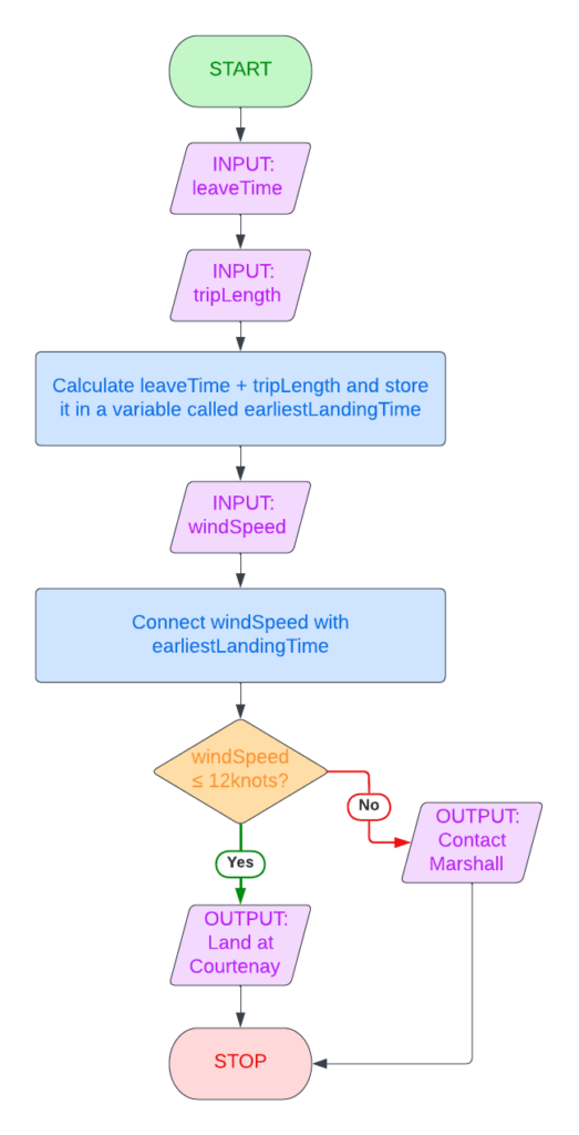 - If āwindSpeedā is less than 12knots Mary can land at Courtenay